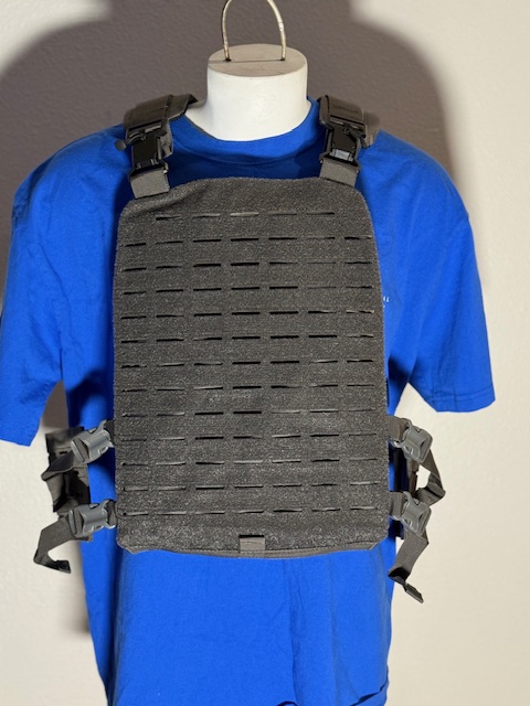 Plate Compatibility Features bottom-loading front and back pockets that securely accommodate standard 10″ x 12″ plates, including Shooter’s Cut, SAPI/ESAPI (or similar trimmed/swimmer cuts), and compatibility with soft ballistic backers plus rifle-rated hard plates (plates not included).